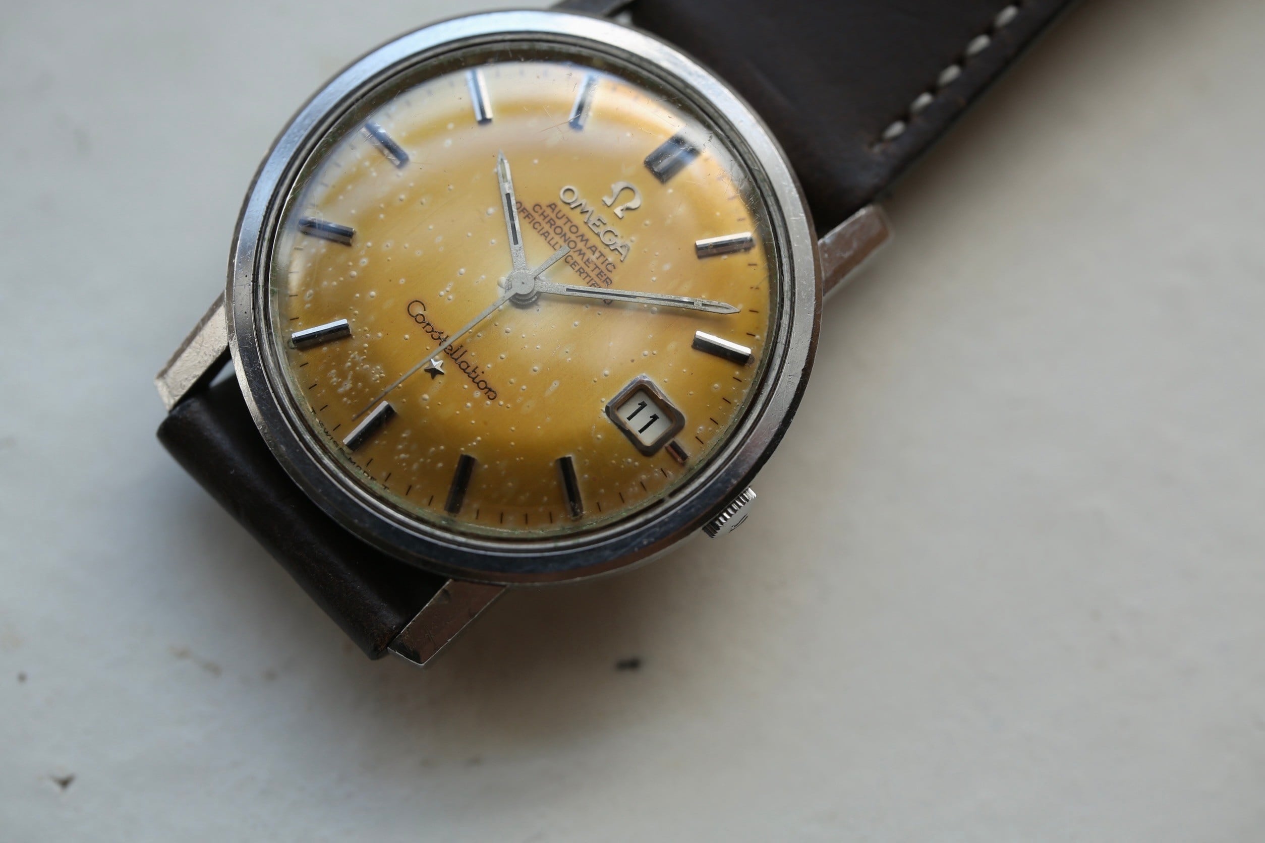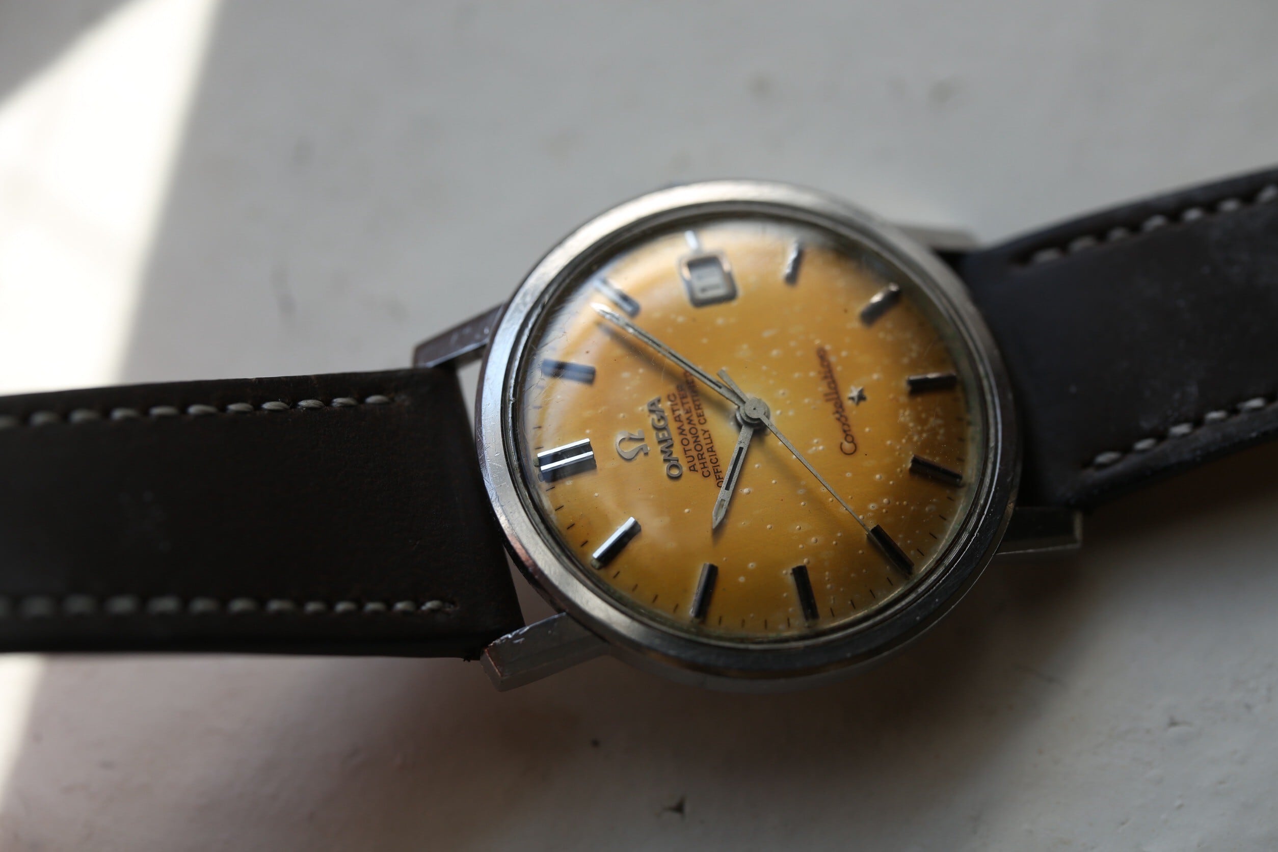 【OMEGA】 1967年製 オメガ コンステレーション デイト 格納竜頭タイプ ゴールドブラウンエイジング 自動巻き SS / Vintagewatch / Constellation / Cal.564