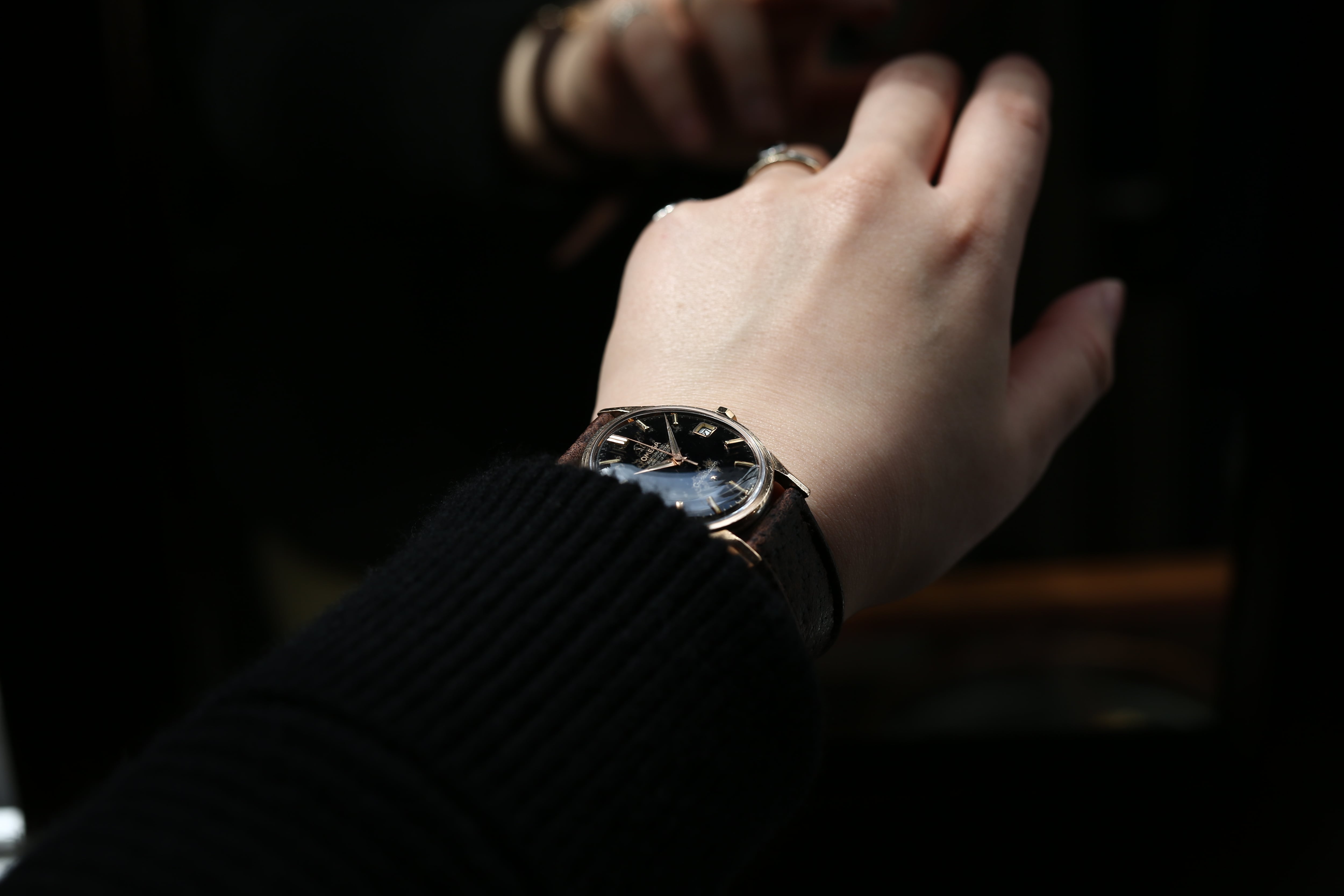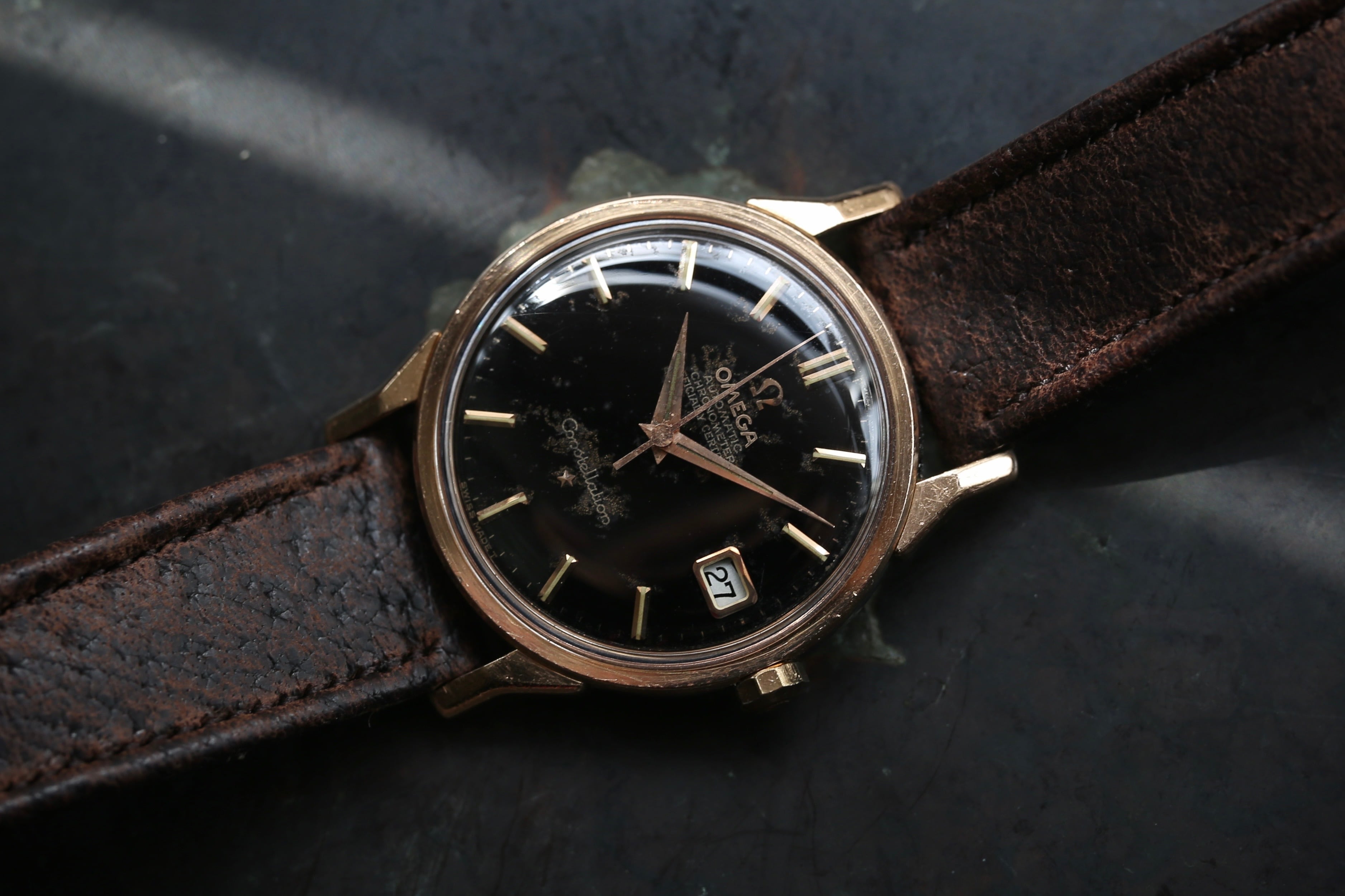【OMEGA】 1966年製 オメガ 『コンステレーション デイト』 ブラックミラーダイヤル Stardust aging ローズゴールド金張り OH / Vintagewatch / constellation / Cal.561