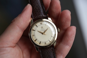 【OMEGA】1950年製 オメガ シーマスター1st前期 ”上がりSeamster” フル楔×夜光インデックス 金張り仕様 / Vintagewatch / Seamaster / Cal.351