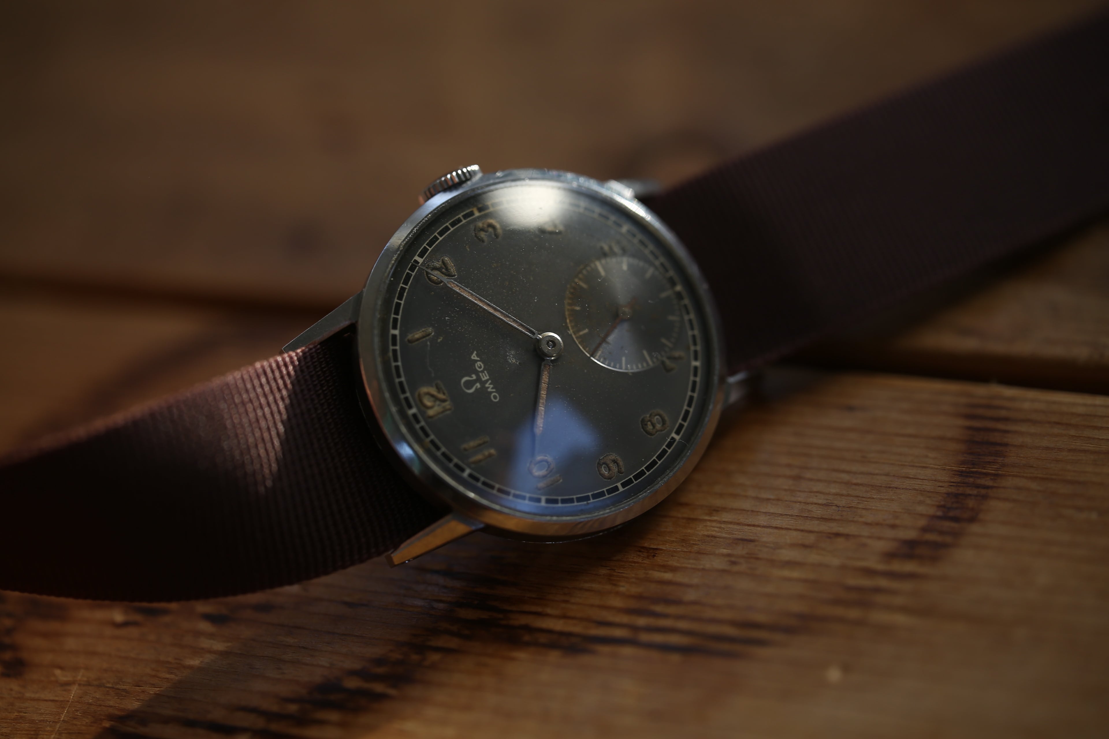 【OMEGA】1945年製 オメガ 30mmキャリバー スモールセコンド仕様 ブラックダイヤル ブラウングレーエイジング OH済み / vintagewatch / black dial / military / hand winding / Cal.30T2